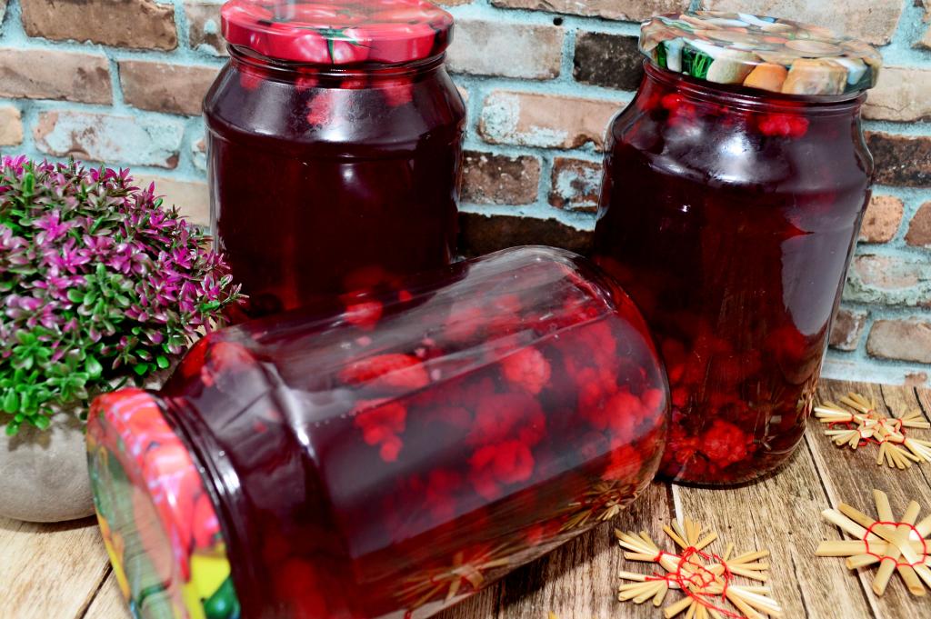 Зимой красивый, вкусный компот, приготовленный из чёрной смородины и малины, станет приятным дополнением к вашему меню.