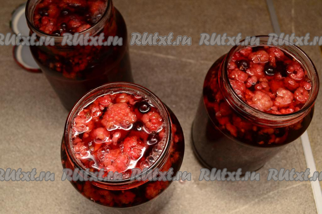 Поверх смородины равномерно распределить по трём банкам малину.