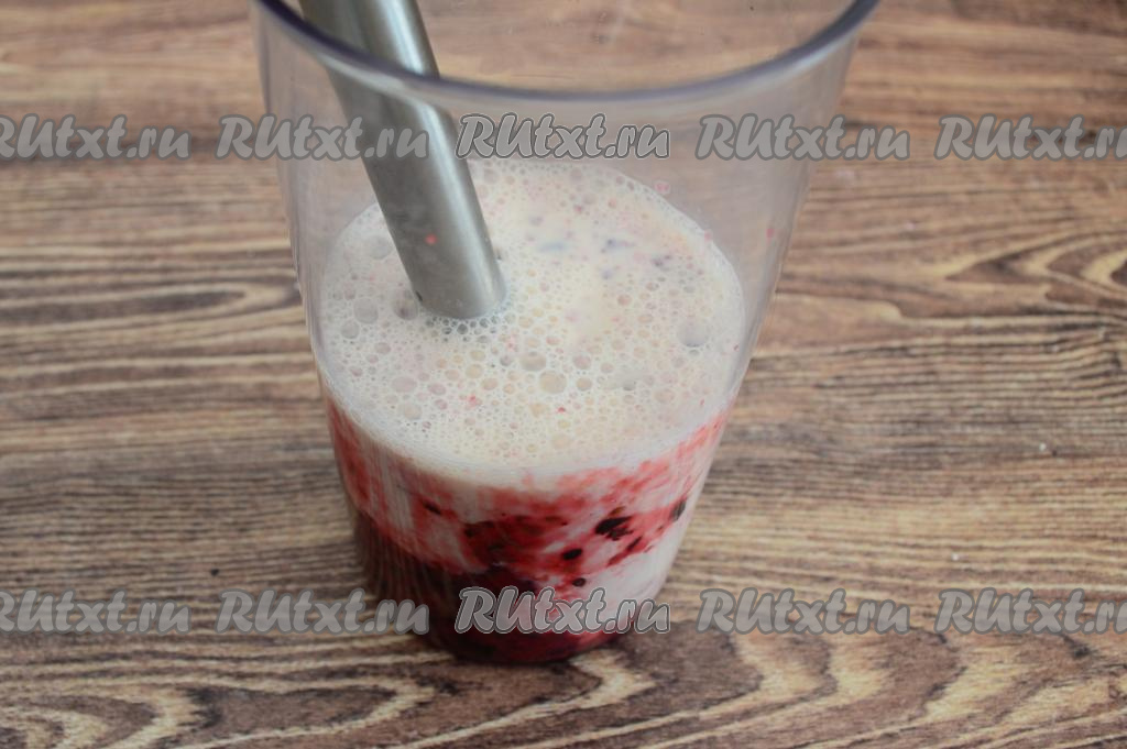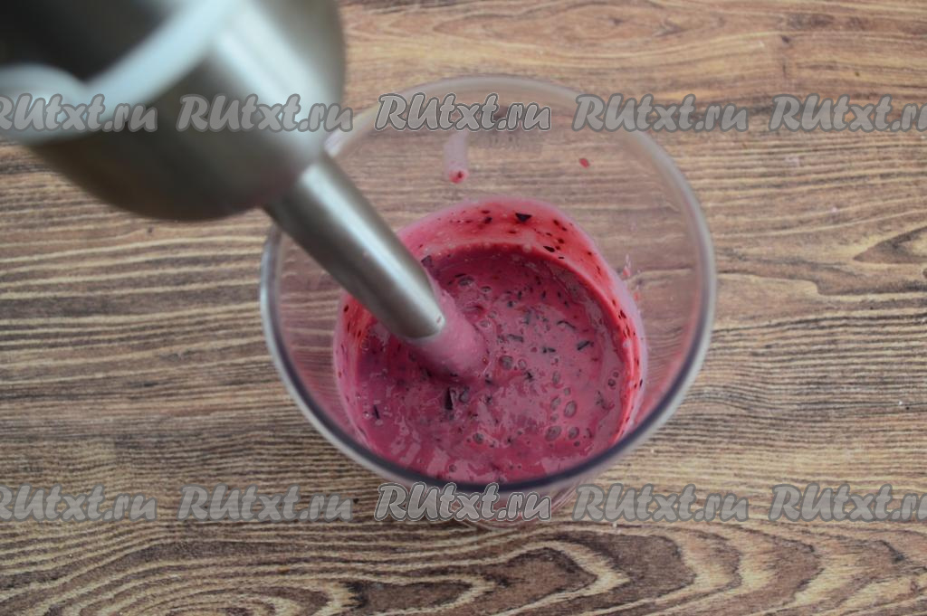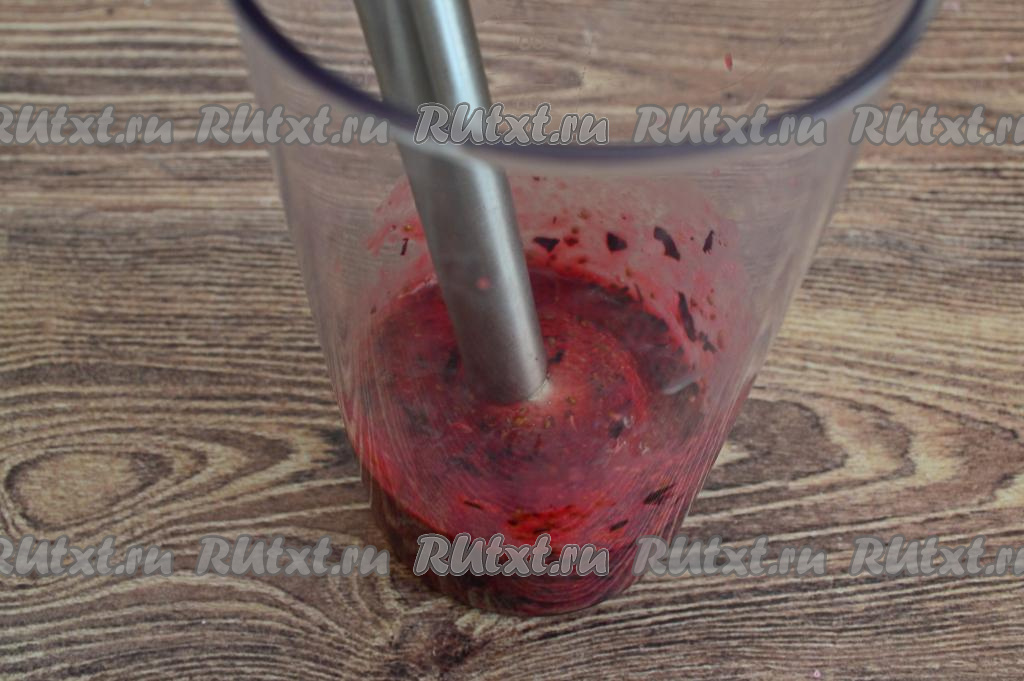 Пробить чёрную смородину погружным блендером до получения однородного пюре.