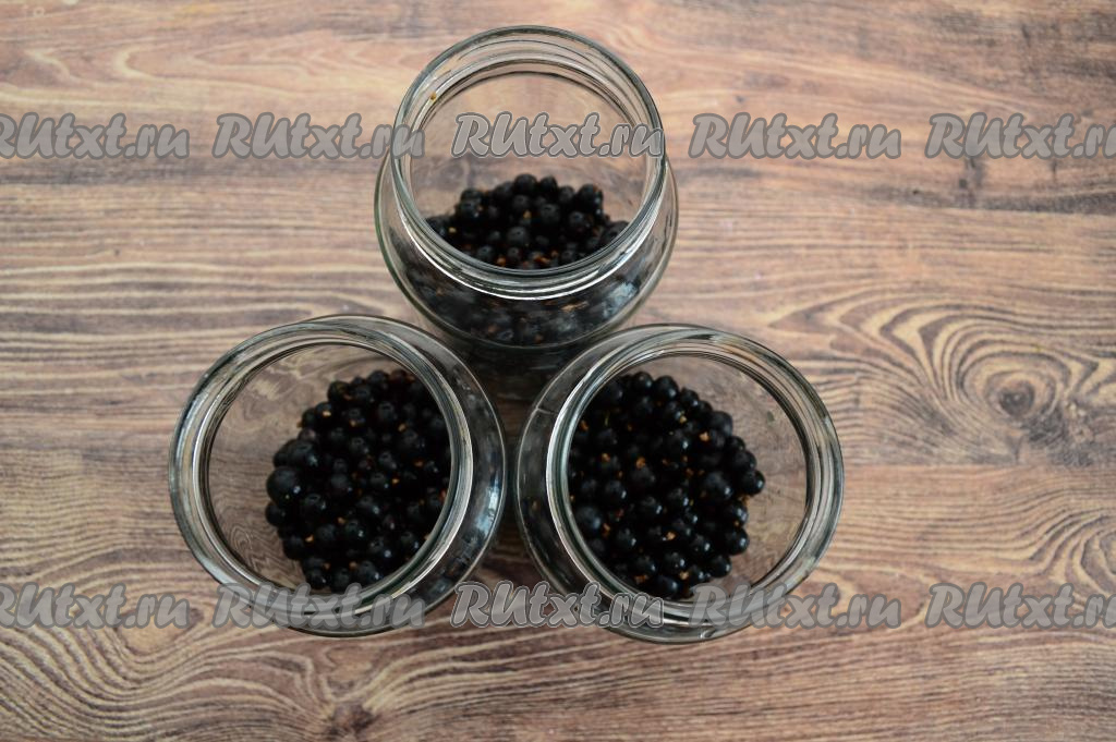 Равномерно распределить чёрную смородину по трём простерилизованным баночкам.