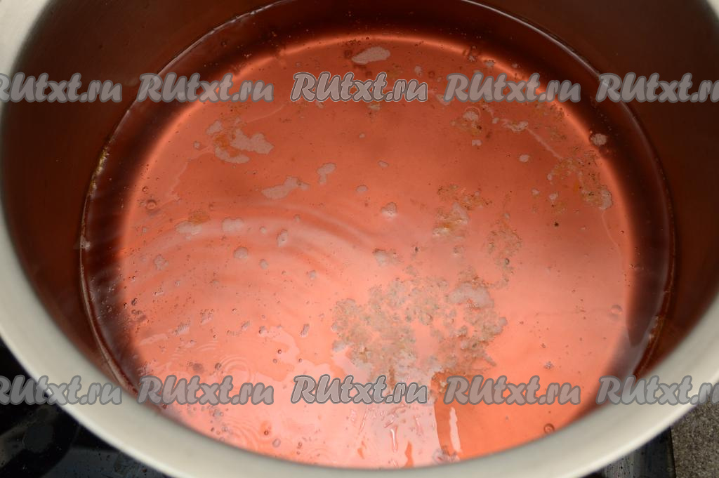 В кастрюлю с водой, которую мы слили из банок, добавить сахар и лимонную кислоту, хорошо перемешать, поставить на сильный огонь. Периодически перемешивая, довести сироп до кипения, а затем проварить его на небольшом огне минуты 2-3, чтобы все кристаллики сахара и лимонной кислоты полностью растворились.