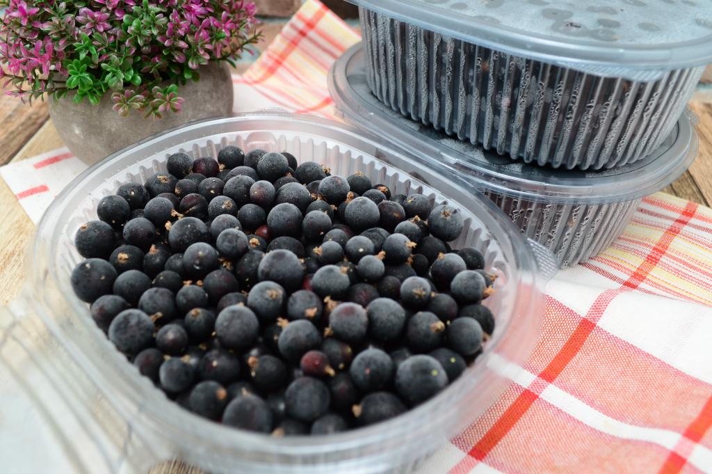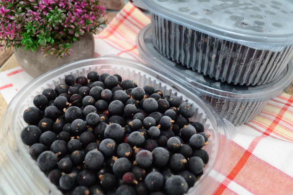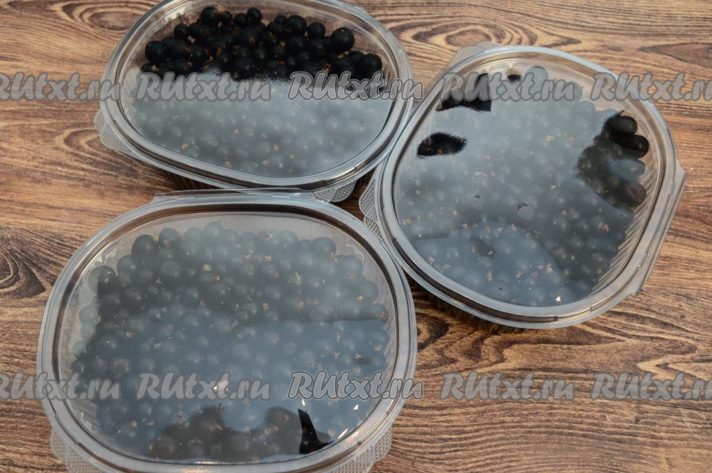 Обсохшие ягоды разложить по пластиковым контейнерам (я разложила по 3 контейнерам объёмом по 750 миллилитров). Сильно утрамбовывать не нужно, чтобы смородина не потеряла форму.