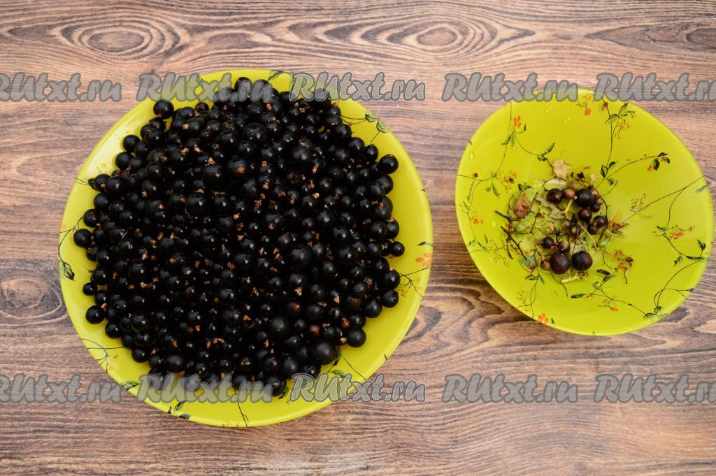 Перебрать смородину, удаляя веточки, листочки, подпорченные ягодки.