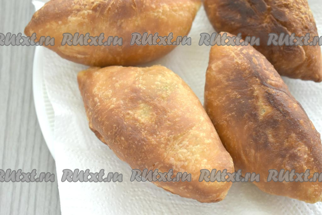Готовые жареные пирожки аккуратно выкладываем со сковороды на бумажные полотенца, чтобы убрать лишнее масло.