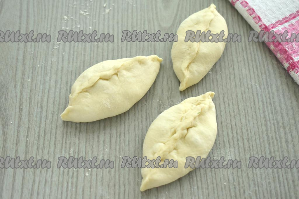 Поднимаем края каждой лепёшки над фаршем, тщательно скрепляем края теста над начинкой, формируя пирожок. Постепенно формируем все пирожки (я сформировала 9 пирожков).