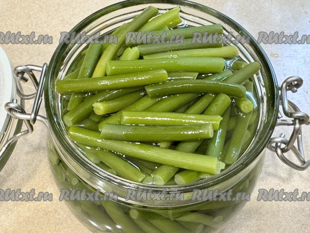 Вот такие баночки с маринованными чесночными стрелками у меня получились.