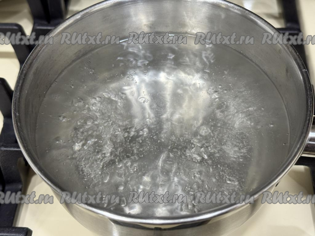 Для приготовления маринада для чесночных стрелок нужно влить в кастрюлю 500 миллилитров воды, добавить соль и сахар, перемешать, поставить на сильный огонь, довести до кипения.