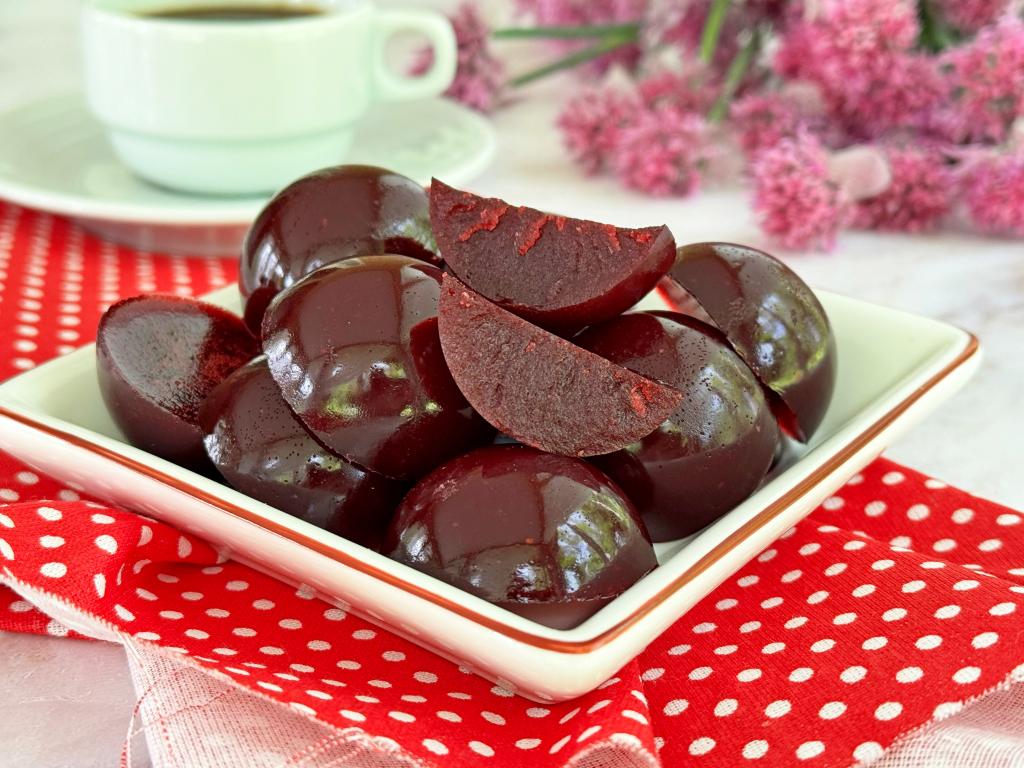 Нежный, очень вкусный мармелад из жимолости, приготовленный с добавлением агар-агара, подать к чаю или кофе.