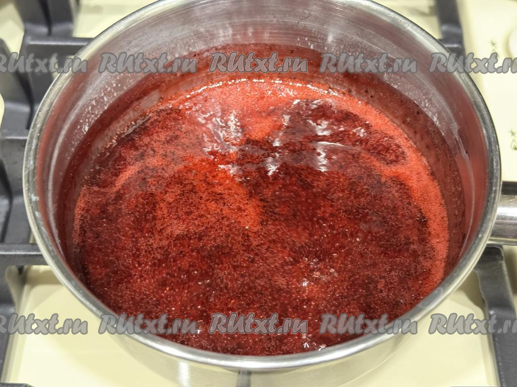 Периодически перемешивая, довести до кипения и варить ягодную массу 2 минуты на небольшом огне, часто перемешивая.