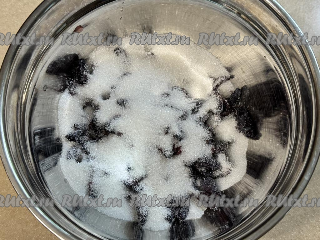 Пробить жимолость с сахаром погружным блендером до получения однородного пюре.