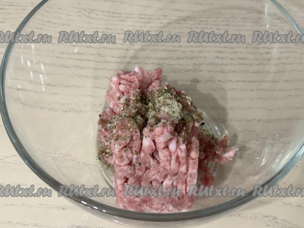 Фарш выложить в миску, посолить и поперчить по вкусу, хорошо перемешать.