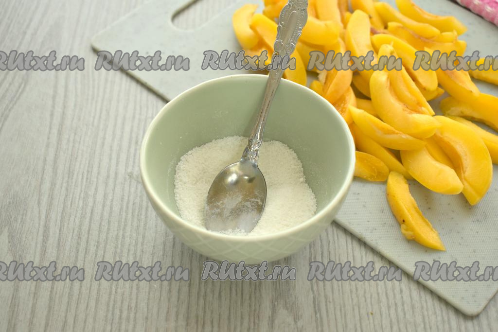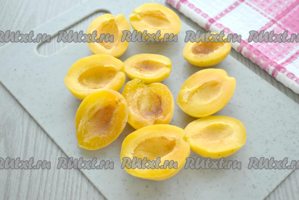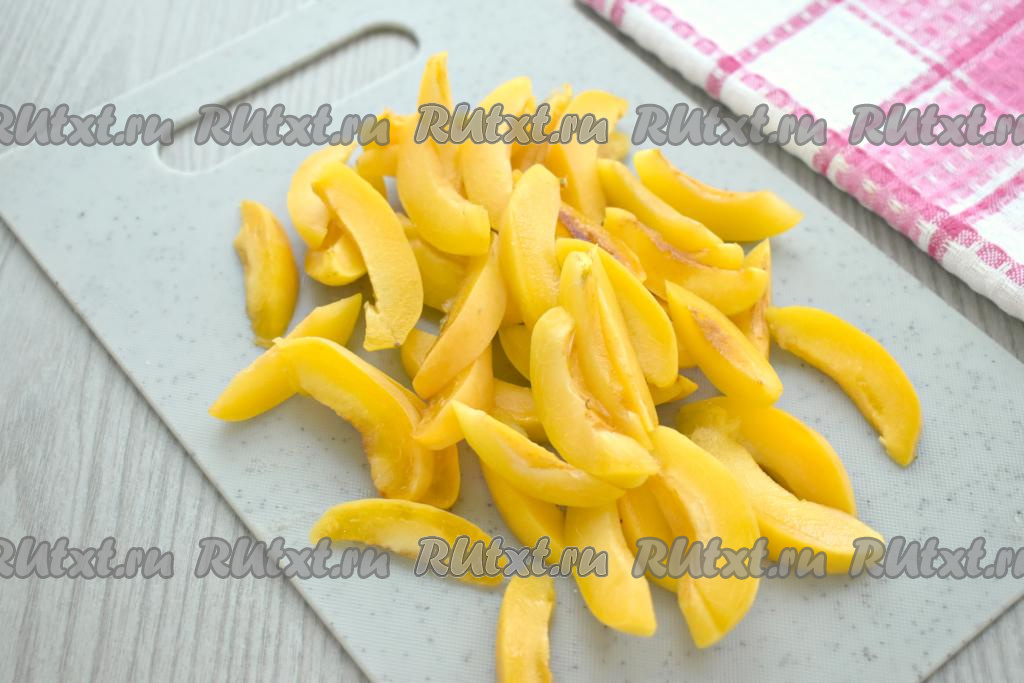 Половинки абрикосов нарезаем на дольки.