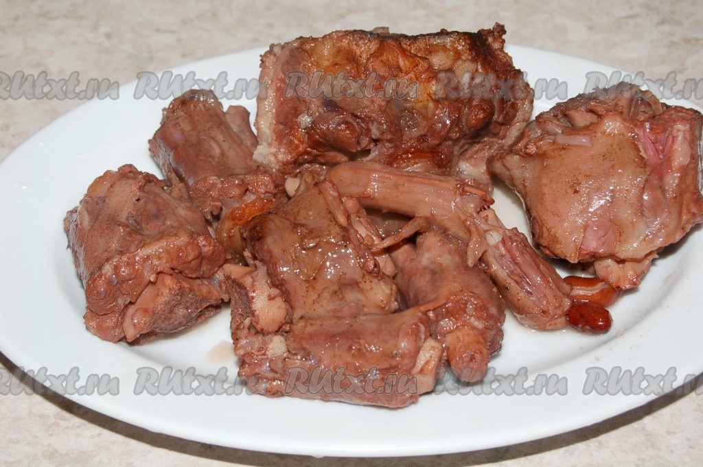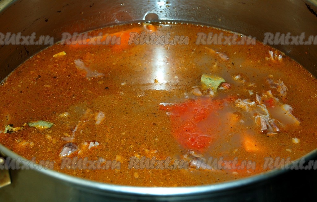 Через 2 часа вытащить кусочки бычьего хвоста из кастрюли (он слегка окрасится от фасоли в красный цвет). Отделить мясо от костей, и мясо опустить обратно в кастрюлю.