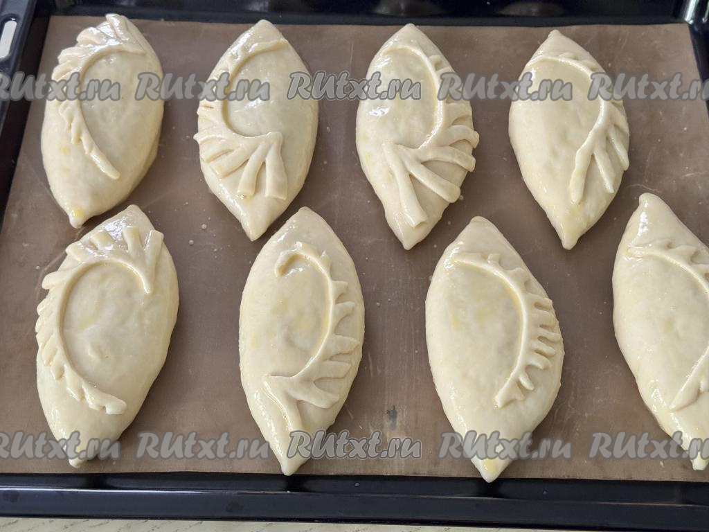 Готовые пирожки вынуть из духовки, переложить на тарелку, накрыть полотенцем и оставить "отдохнуть" минут на 10.