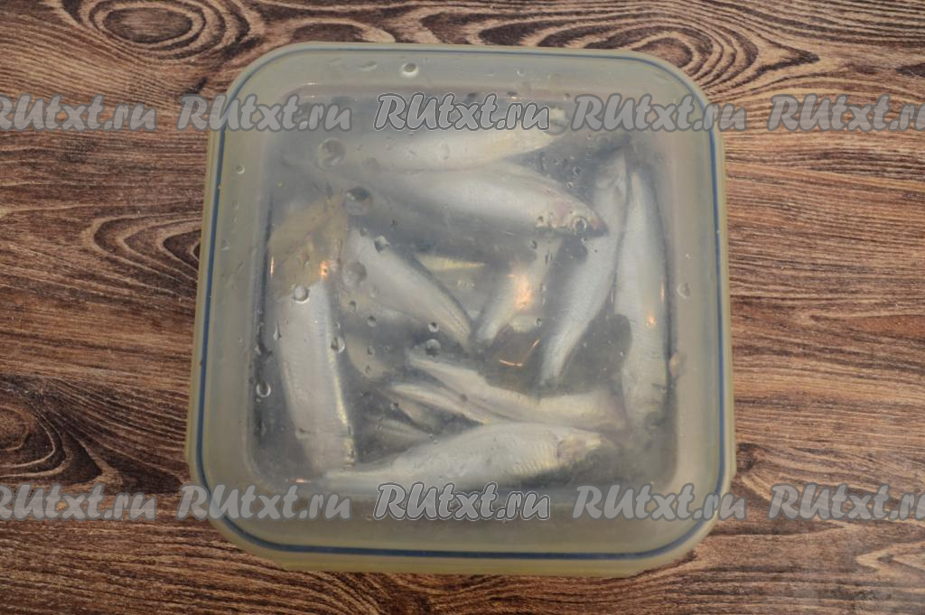 Размороженную кильку сложить в контейнер.