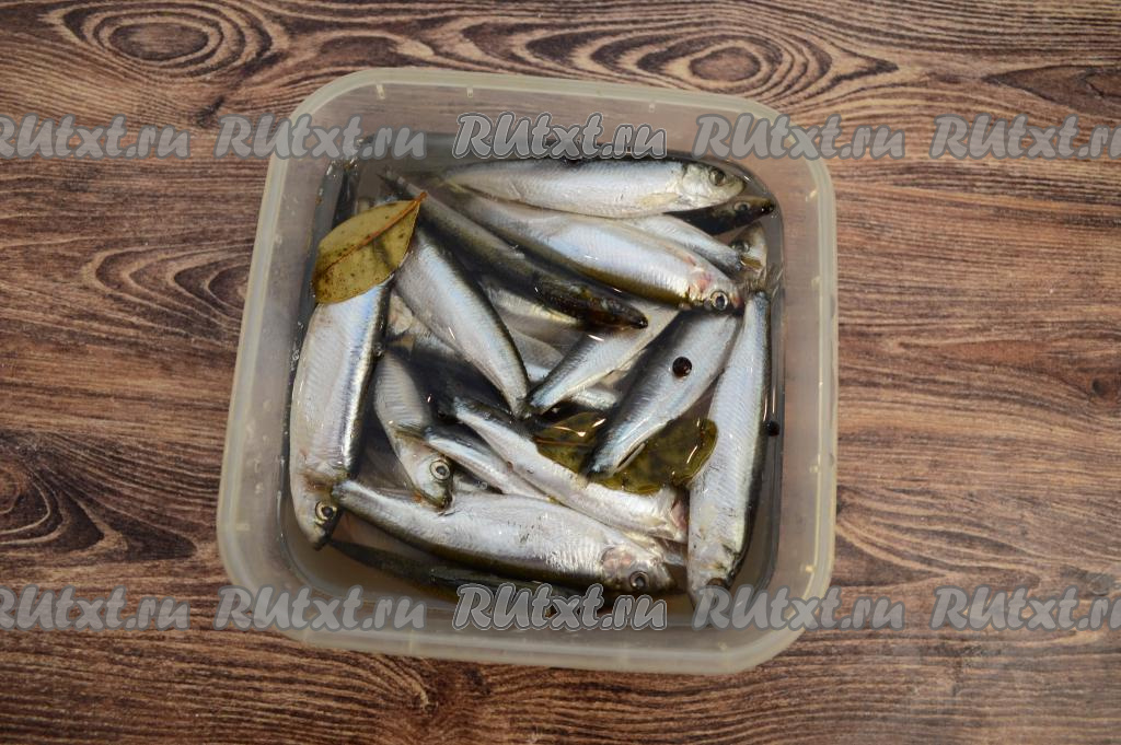 Закрыть контейнер крышкой и отправить кильку просаливаться в рассоле на сутки в холодильник.