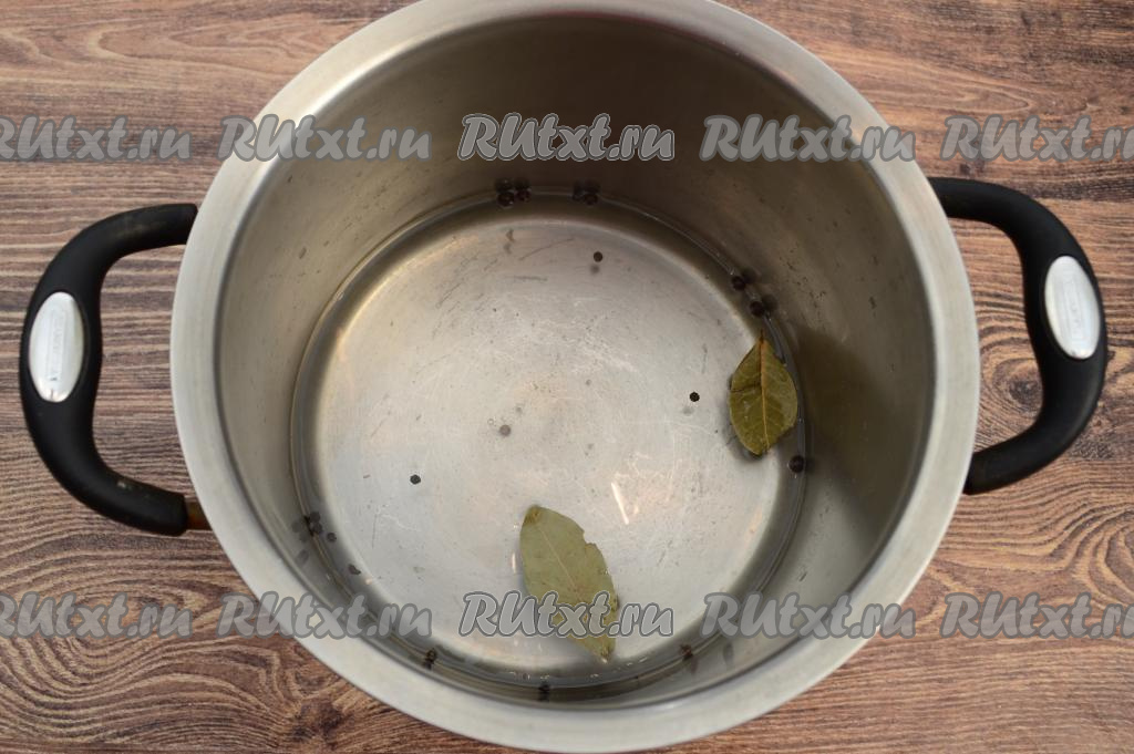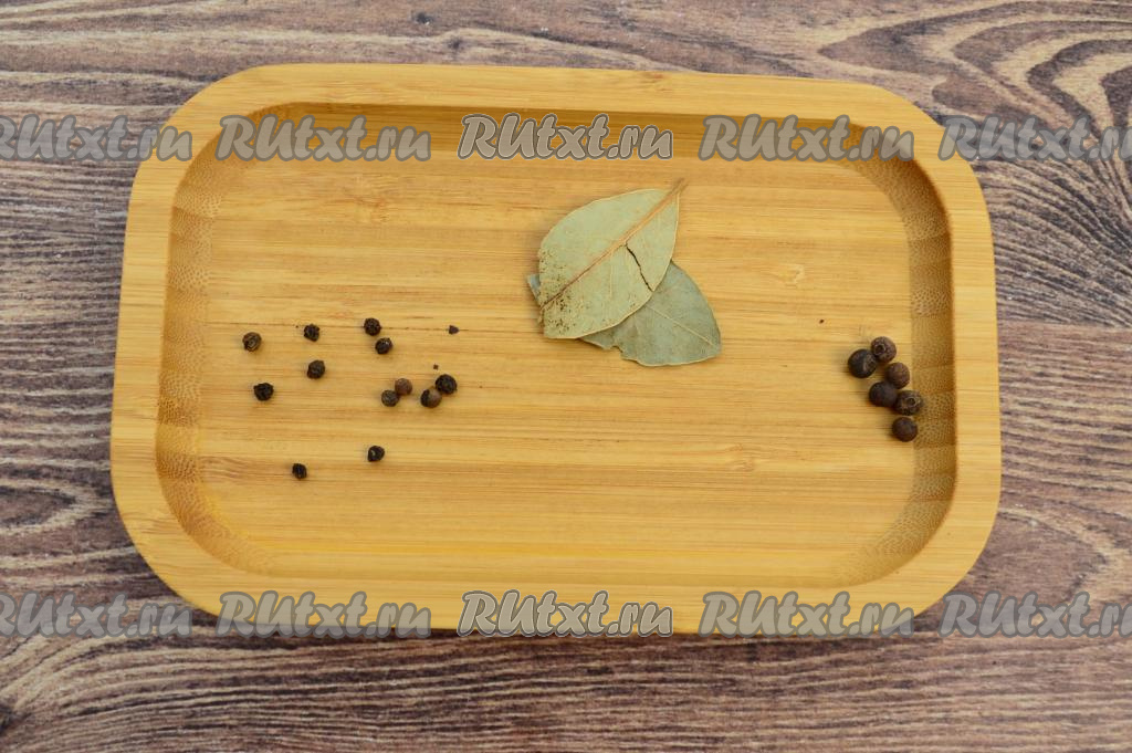 Подготовить специи: лавровые листья, горошины душистого и чёрного перцев.