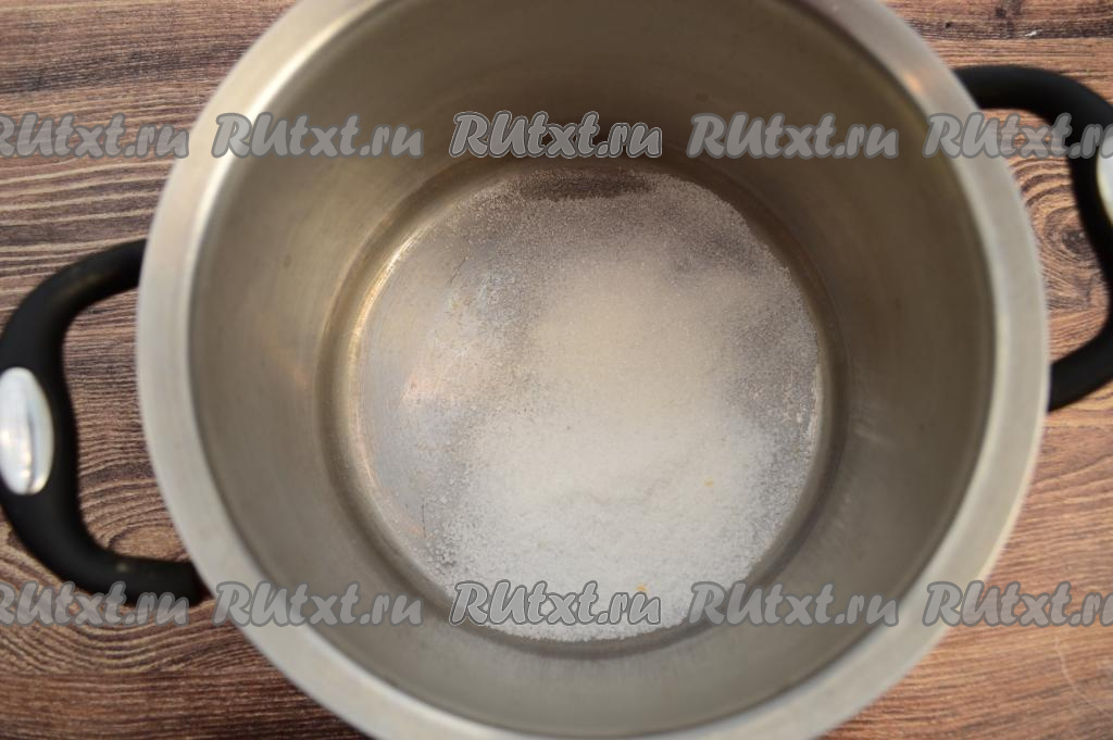 В кастрюлю всыпать соль и сахар.