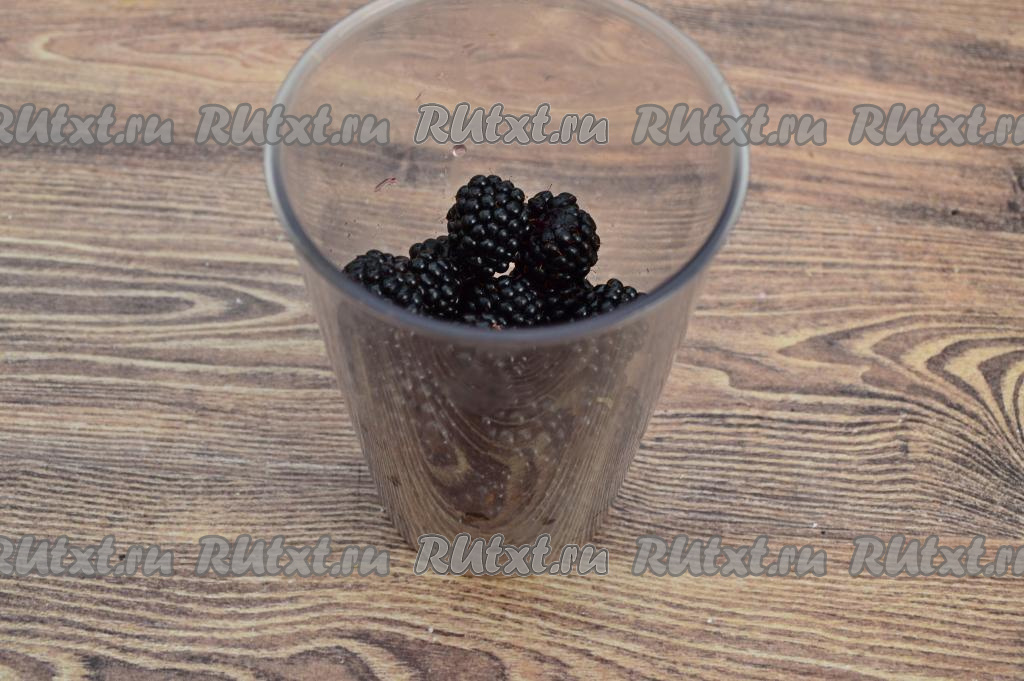 Сложить ежевику в чашу погружного блендера.