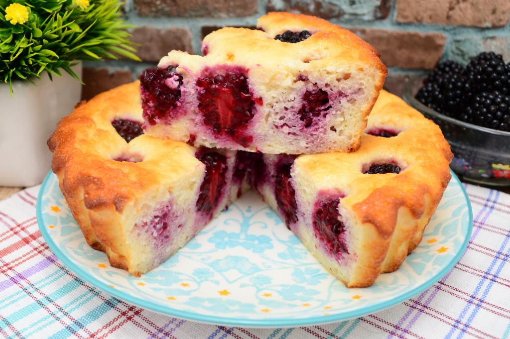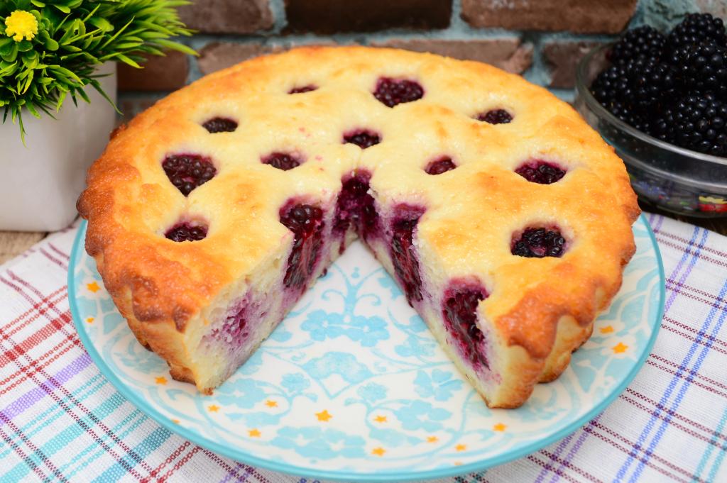 Слегка остывшую творожную запеканку нарезать на кусочки и можно наслаждаться её нежнейшим вкусом с приятным ароматом ягод ежевики.