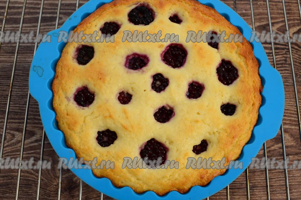 Отправить форту с творожным тестом и ежевикой в духовку, разогретую до 180 градусов, готовить запеканку 35-40 минут (до светло-золотистого цвета теста). Готовую запеканку достать из духовки, остудить в течение 15-20 минут в форме.