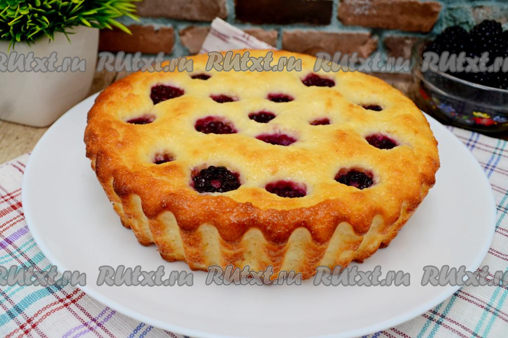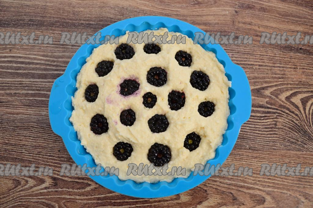 Затем равномерно распределить ягоды по поверхности будущей запеканки, немного утапливая ежевику, но не до конца.