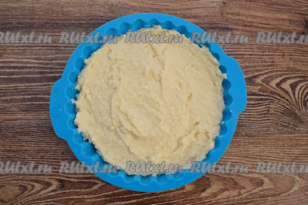 Я использовала силиконовую форму диаметром 16 сантиметров и ничем её перед выкладыванием теста не смазывала. Если у вас металлическая форма, тогда перед выкладыванием теста дно и бока формы обязательно смажьте небольшим количеством растительного масла.