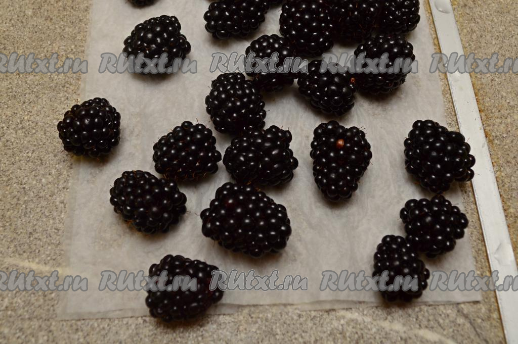 Свежую ежевику нужно перебрать, удаляя подпорченные ягоды. Аккуратно промыть ежевику водой, разложить на бумажном полотенце и оставить минут на 10, чтобы ягоды обсохли. Если будете готовить с замороженной ежевикой, на которой нет большого количества льда, значит ягоды можно не размораживать. Если же на замороженной ежевике много льда, тогда слегка разморозьте её, лишнюю воду слейте.