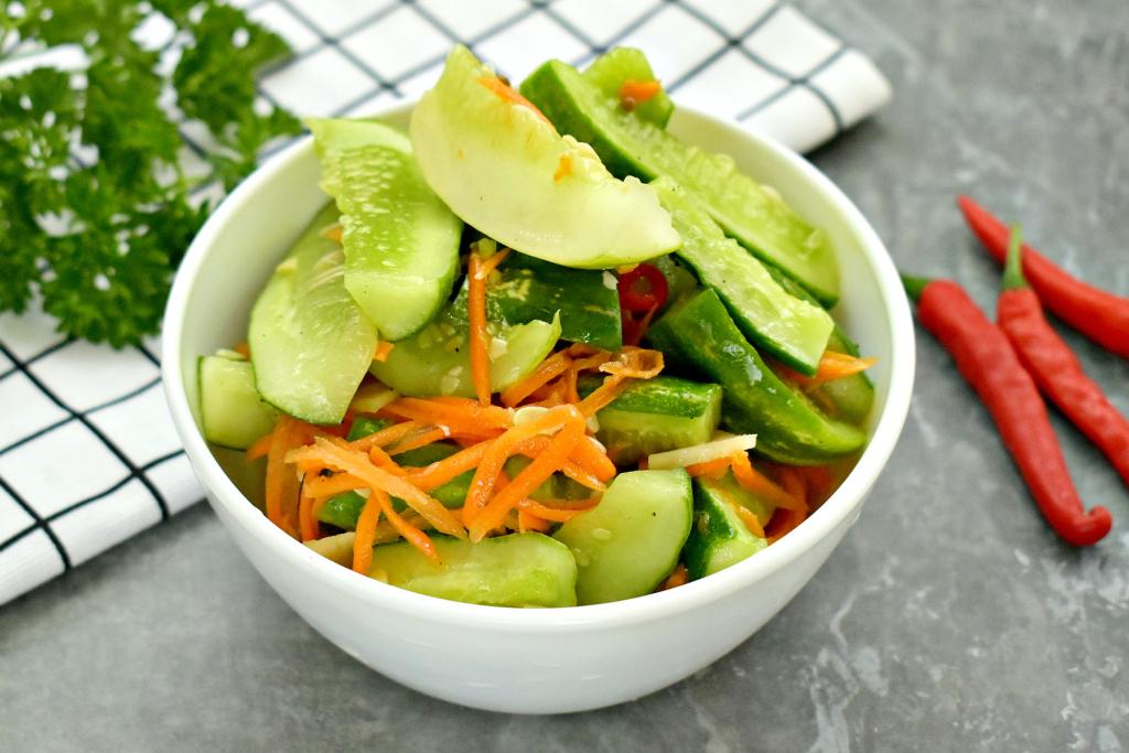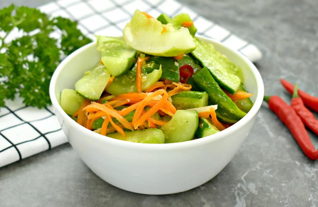 Существуют самые различные варианты приготовления малосольных огурчиков. В этот раз предлагаю приготовить буквально за 5-6 часов малосольные огурцы с морковью по-корейски. Закуска получается в меру острой, с приятной пикантной ноткой, аппетитной и очень вкусной. Такие малосольные огурчики с морковью быстрого приготовления можно подать в качестве дополнения к мясным блюдам, гарнирам, взять на пикник. Эта яркая закуска настолько хороша на вкус, что её можно подать летом и к праздничному столу.