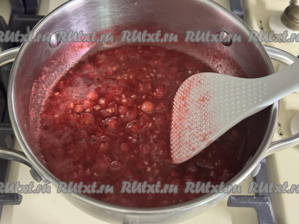 Поставить кастрюлю с ягодной массой на средний огонь и, периодически перемешивая, довести до кипения.