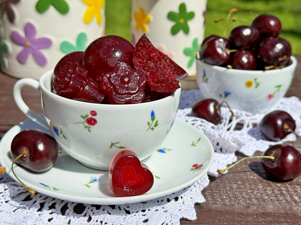 Вкусный, яркий десерт подать к столу. Нежный мармелад из черешни станет приятным дополнением к любому чаепитию, он получается стабильным, прекрасно держит форму при комнатной температуре.