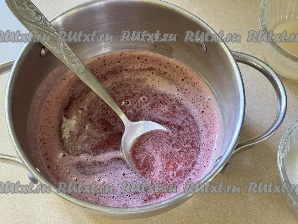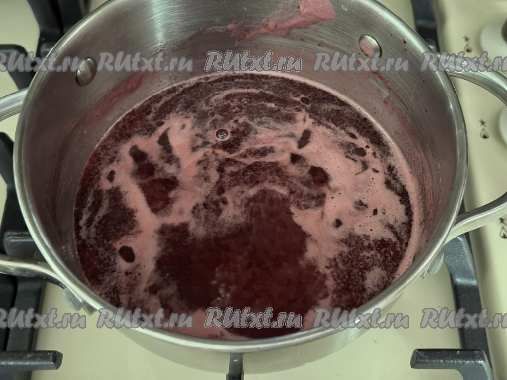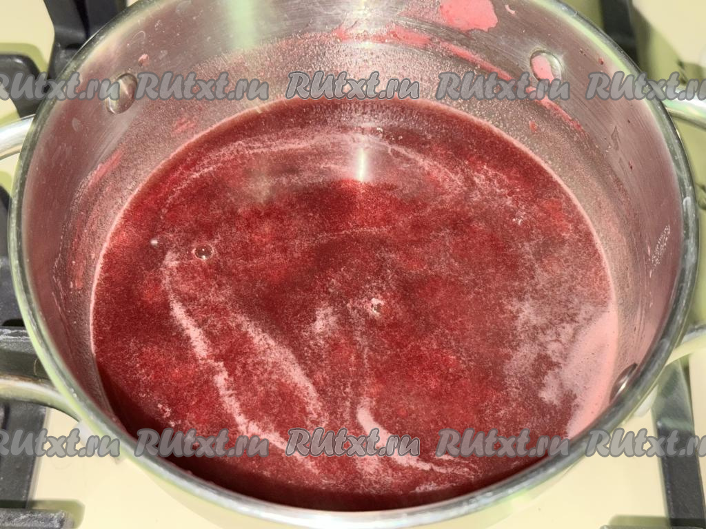 Поставить кастрюлю с ягодным пюре на средний огонь, периодически перемешивая, довести до кипения, после этого уменьшить огонь и варить 3 минуты, иногда помешивая.