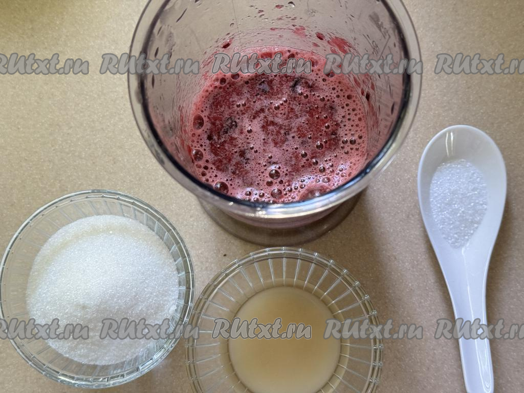 В кастрюлю с ягодным пюре всыпать сахар и лимонную кислоту, тщательно перемешать.