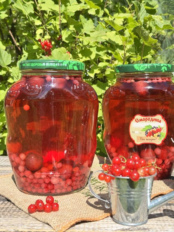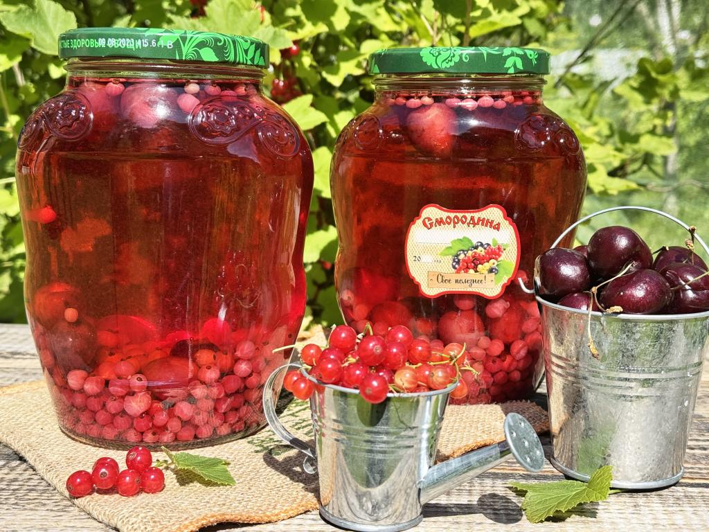 Компот из черешни и красной смородины получается ярким и очень вкусным. Так как этот компот с косточками, хранить его можно не более года.