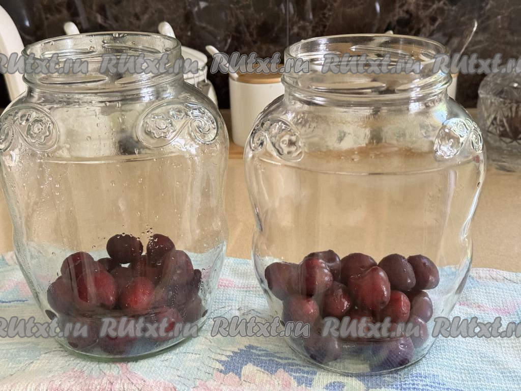 В каждую простерилизованную банку выложить 200 грамм черешни.