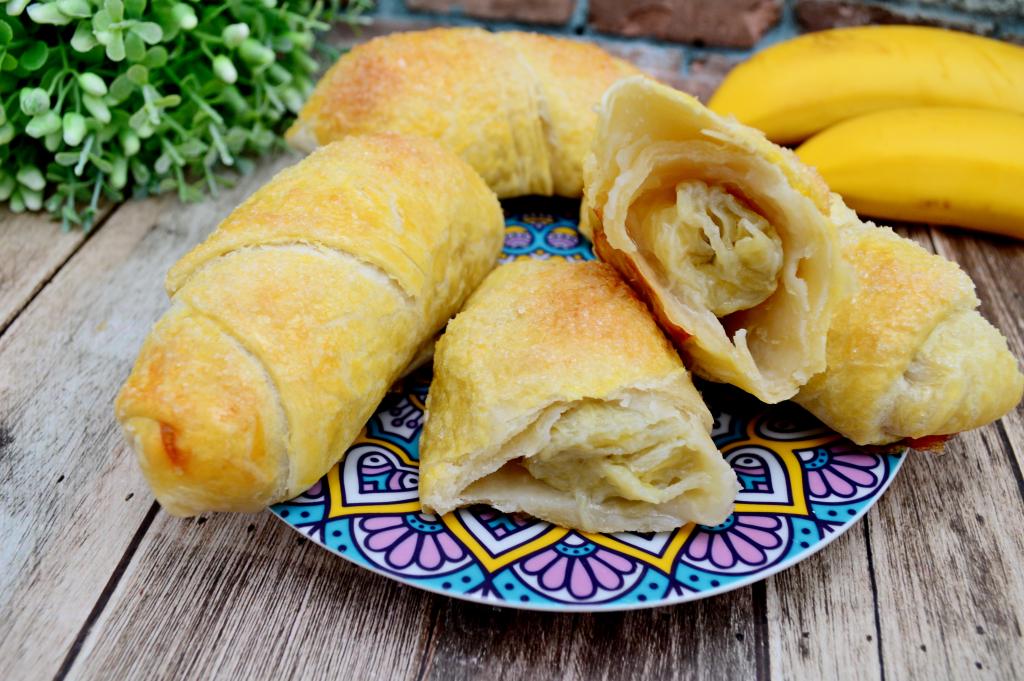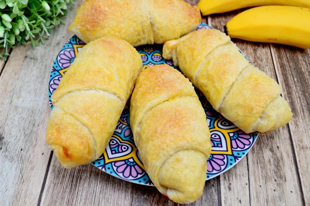 Предлагаю приготовить изумительно вкусные булочки из покупного слоёного теста с начинкой из банана. В этой выпечке приятно сочетаются тонкое, нежнейшее тесто и по-настоящему сочная, мягкая банановая начинка. Вроде бы всё предельно просто, достаточно привычное сочетание вполне доступных ингредиентов, а булочки получаются просто тающими во рту. Настоятельно советую приготовить для себя и своих близких эту выпечку с бананами!