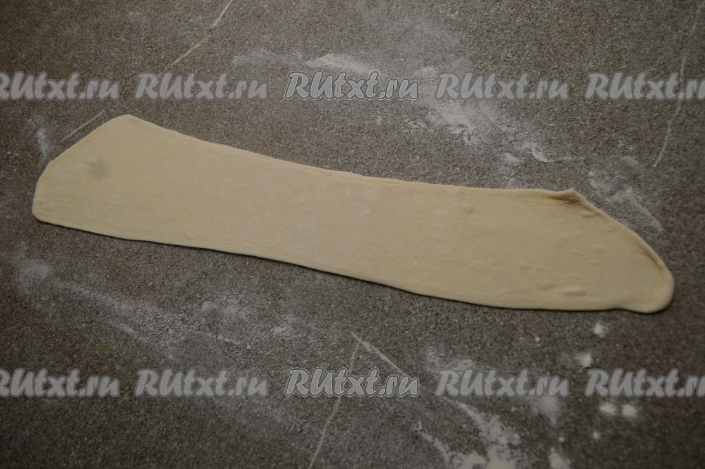 Взять первую полоску теста, раскатать её до толщины примерно 2 миллиметра.