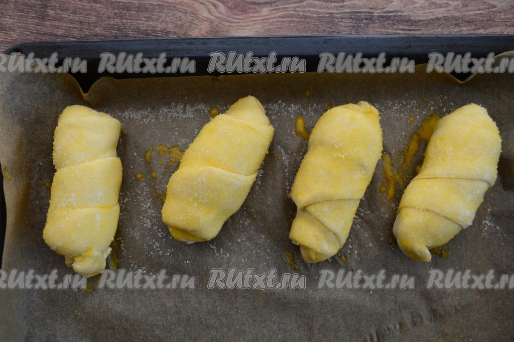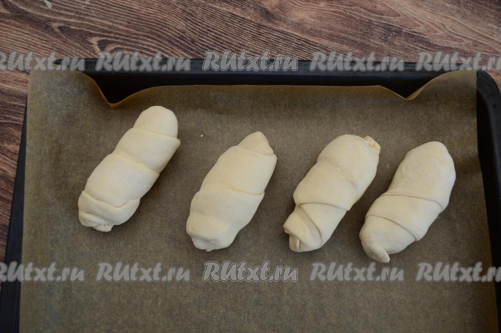 Аналогично сформировать все 4 заготовки булочек. Разместить их на противне, застеленном пергаментом.