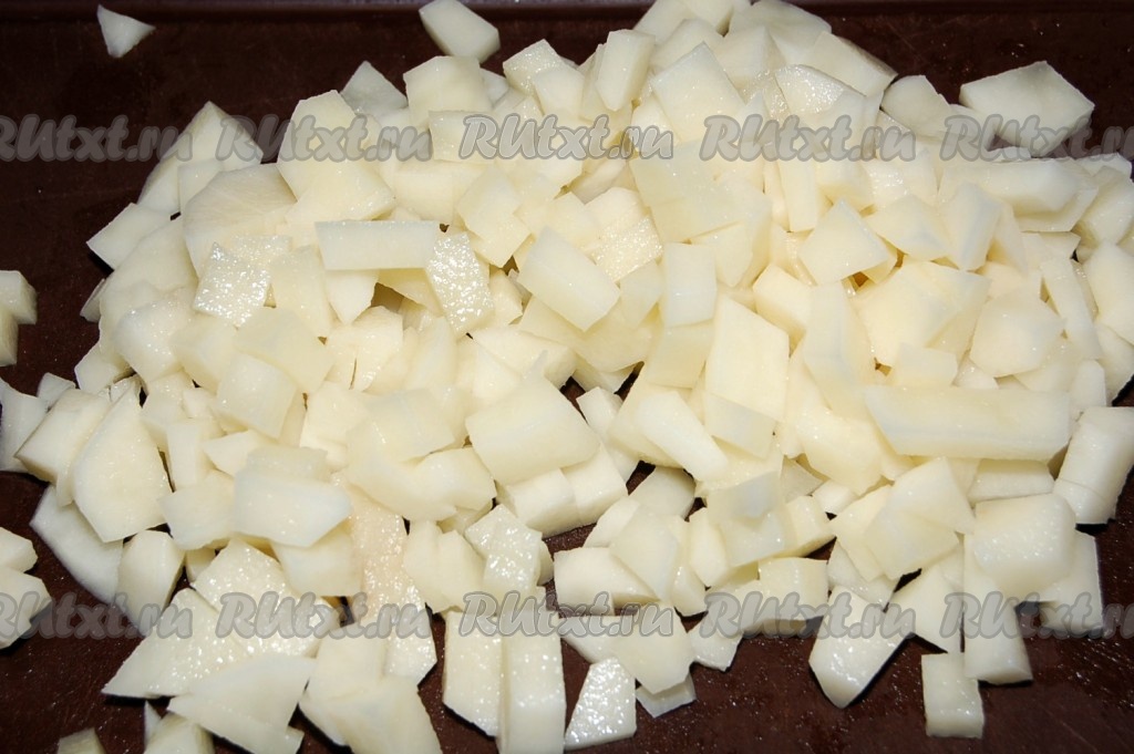 Картофель нарезать небольшими кубиками.