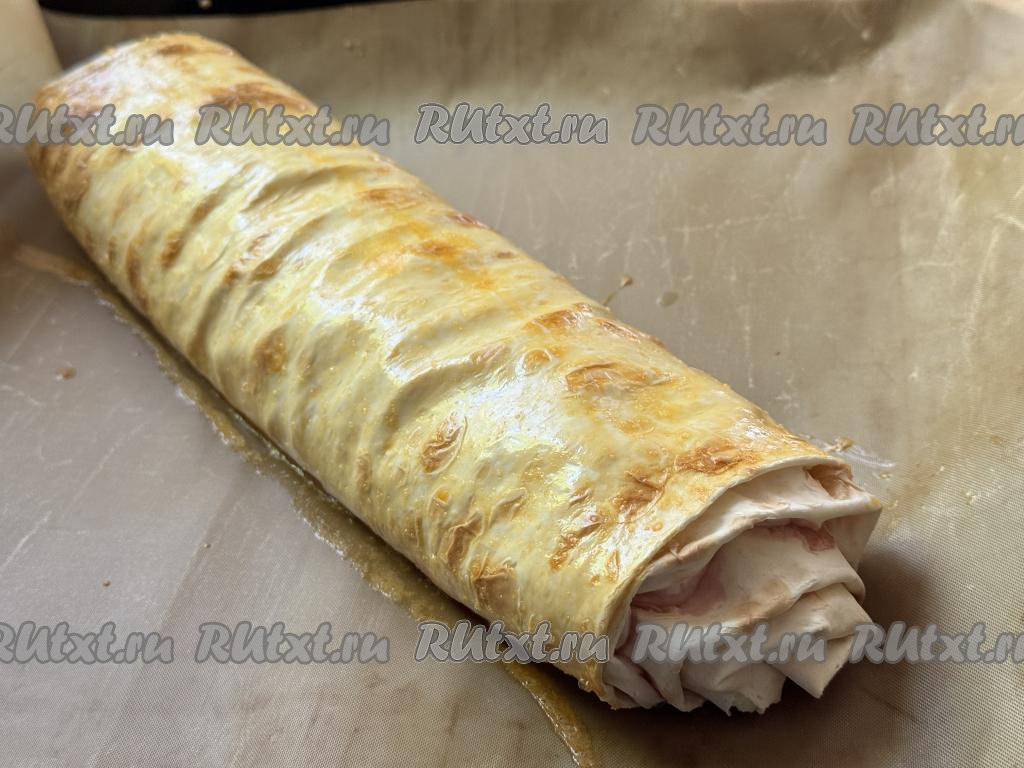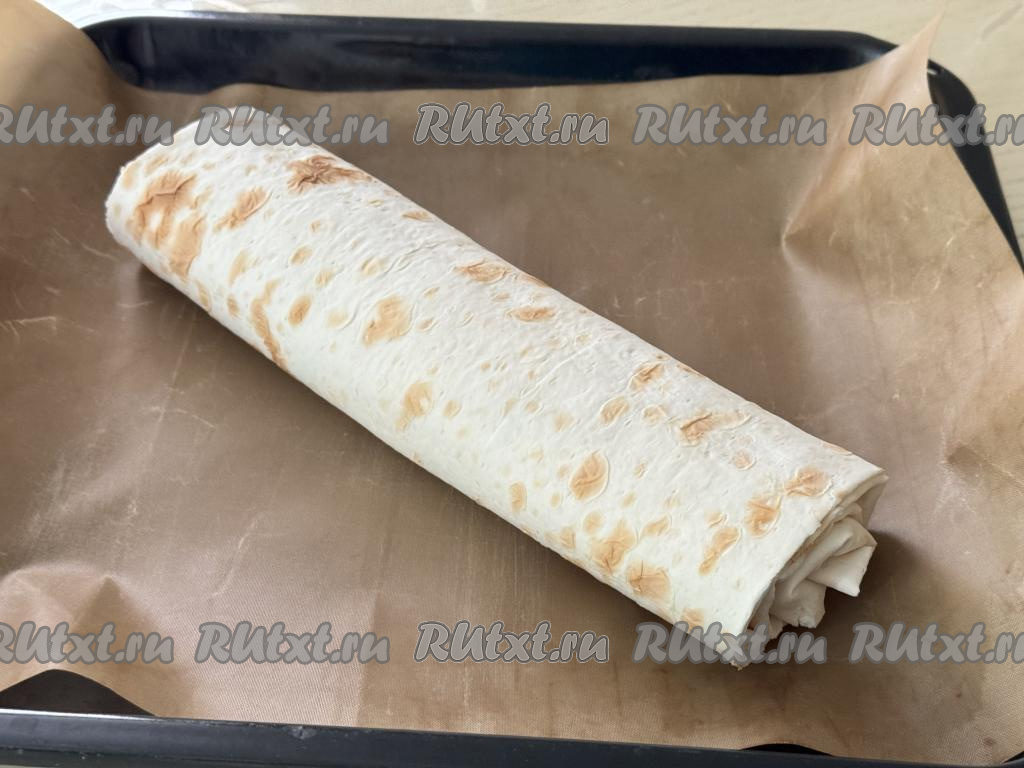 Сформированный рулет выложить на противень, застеленный ковриком (или пергаментом) для выпечки.