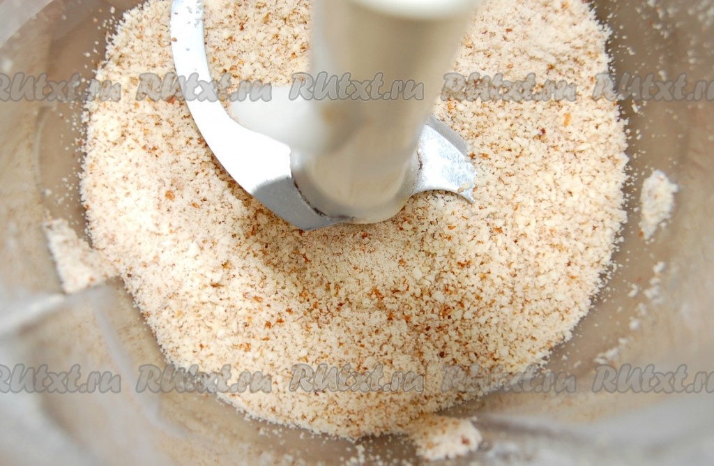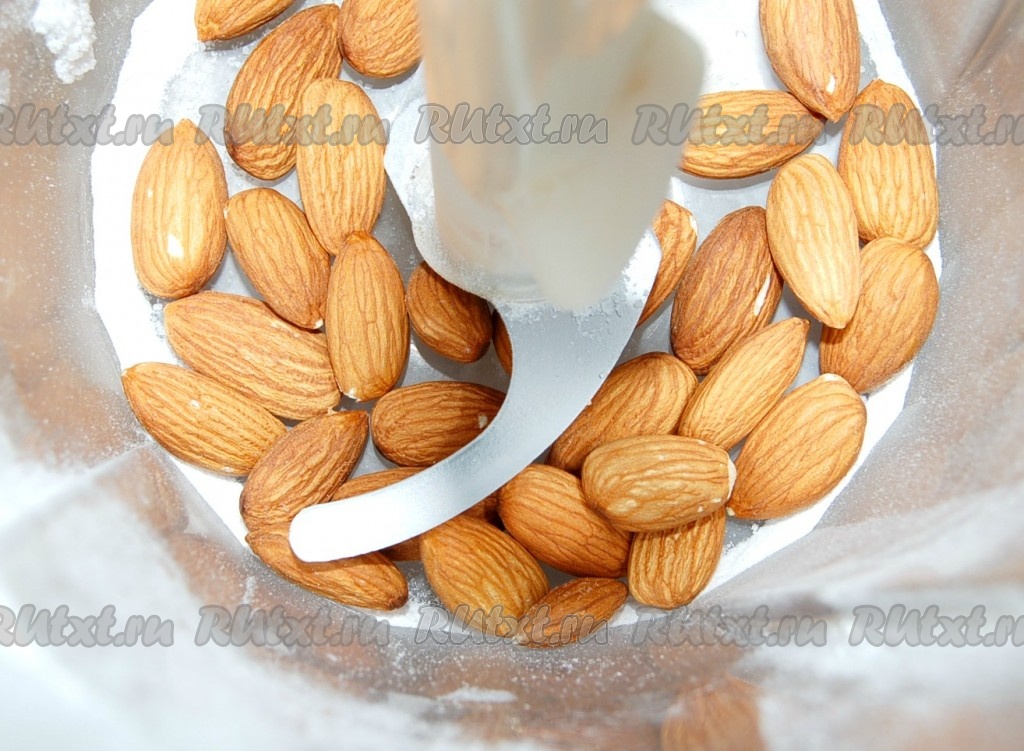 Миндаль измельчить в блендере до получения однородной миндальной муки.