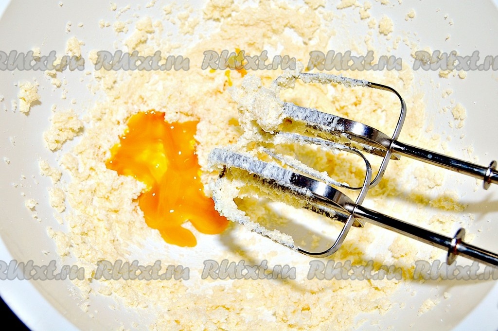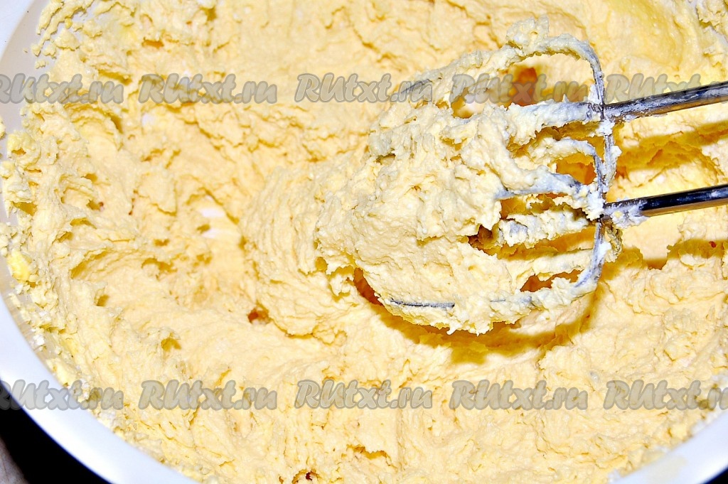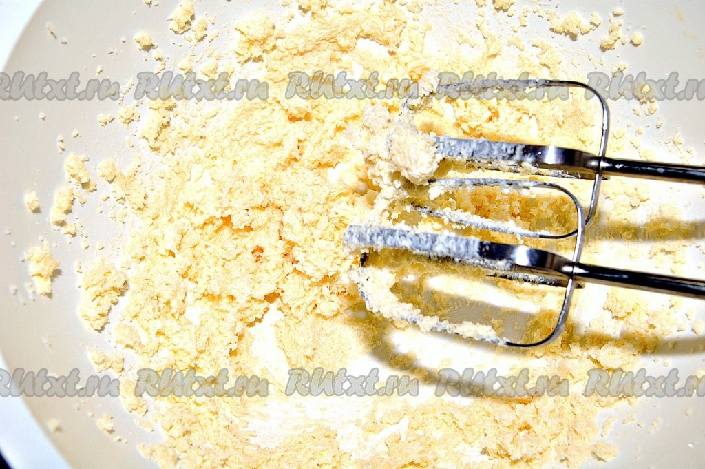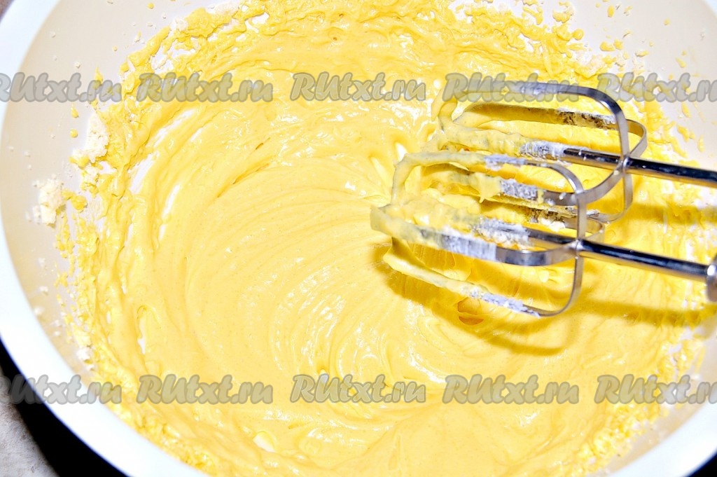 Отделить желтки от белков. В масляную смесь добавить по одному желтки, каждый раз тщательно взбивая яично-масляную смесь миксером.