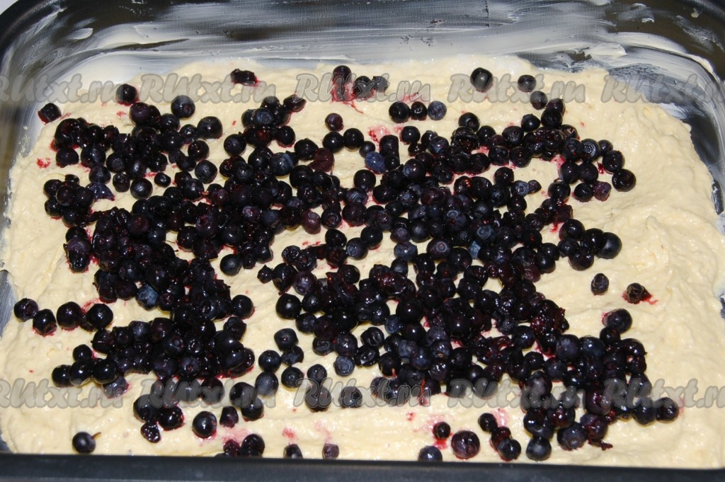На тесто равномерно выложить чернику (если ягоды заморожены, немного разморозьте их и слейте лишнюю жидкость).