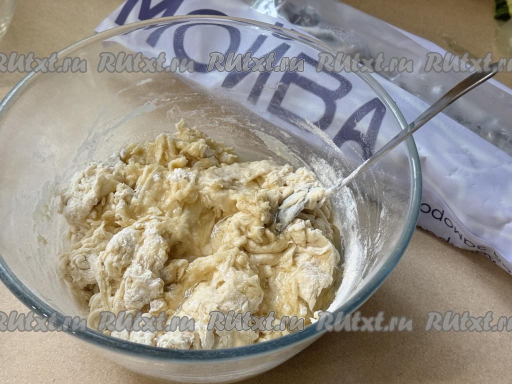 Вымешивая тесто и добавляя, если требуется, муку, учитывайте, что итоговое тесто должно получиться гладким, нежным, практически не липнущим к рукам.