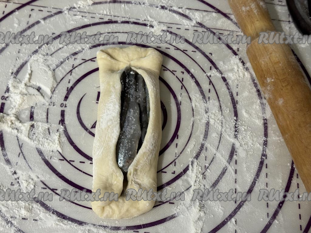 Завернуть немного длинные края теста на мойву.