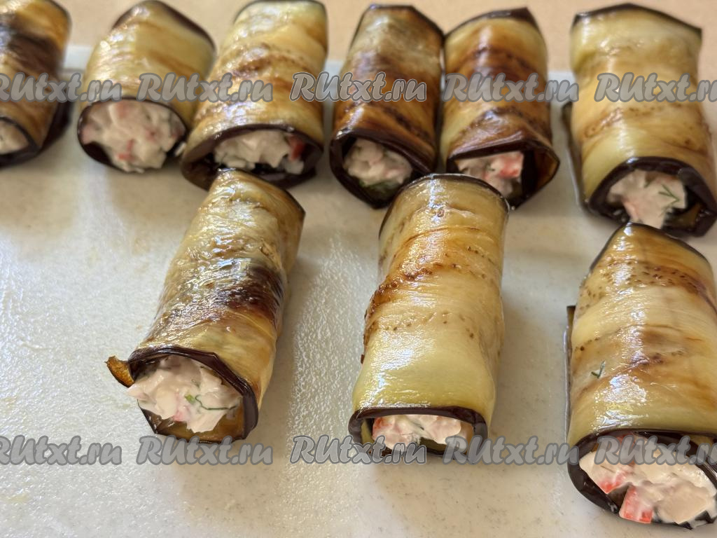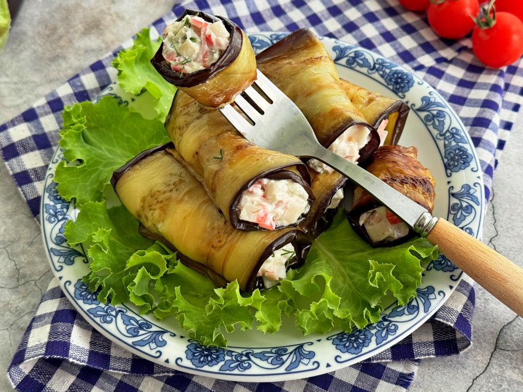 Вкусные, пикантные рулетики из баклажана с аппетитной начинкой из крабовых палочек можно подать и к семейному ужину, и к праздничному столу.