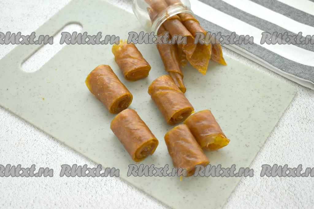 Даём сливовой пасте немного остыть. Затем удаляем пергамент, сворачиваем пастилу в рулет, нарезаем на кусочки (или как вам нравится). Хранить пастилу из жёлтой сливы, приготовленную в сушилке, рекомендуется в сухой стеклянной ёмкости, закрыв плотно крышкой, в прохладном и тёмном месте, например, в кухонном шкафу или холодильнике.