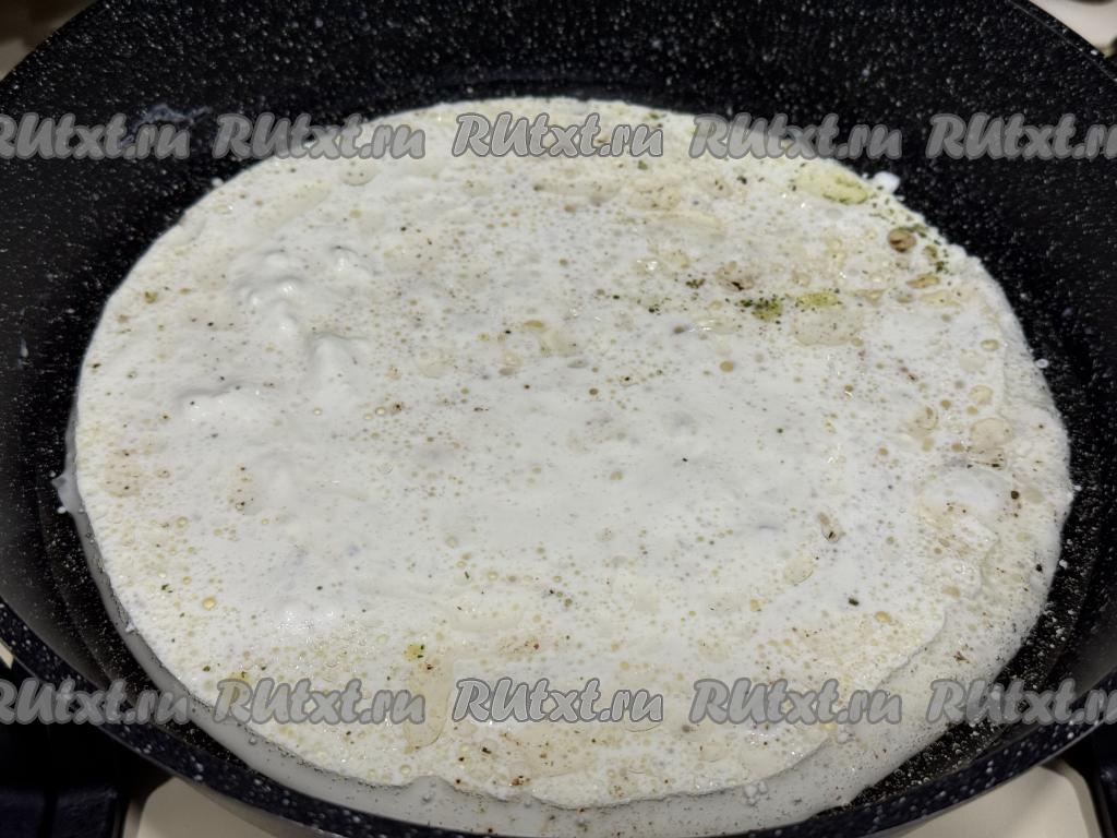 В сковороду с обжаренным чесноком влить сливки, посолить, поперчить по вкусу, довести до кипения, сразу уменьшить огонь.
