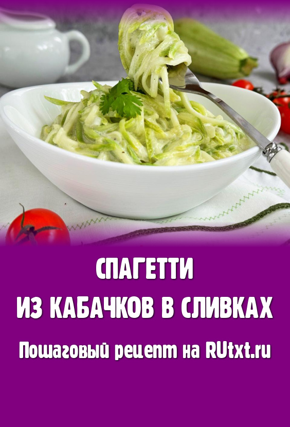 Аккуратно, стараясь не поломать полоски кабачка, перемешать, покрывая все кабачковые спагетти сливками. Довести сливки до кипения, уменьшить огонь, накрыть крышкой, томить 5 минут. Постепенно кабачки станут мягкими и эластичными. В процессе томления попробовать на вкус, если нужно, досолить. Для того чтобы спагетти из кабачков равномерно пропитались сливочным соусом, в процессе тушения их нужно 1-2 раза аккуратно перемешать.