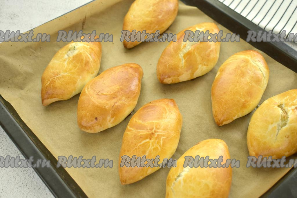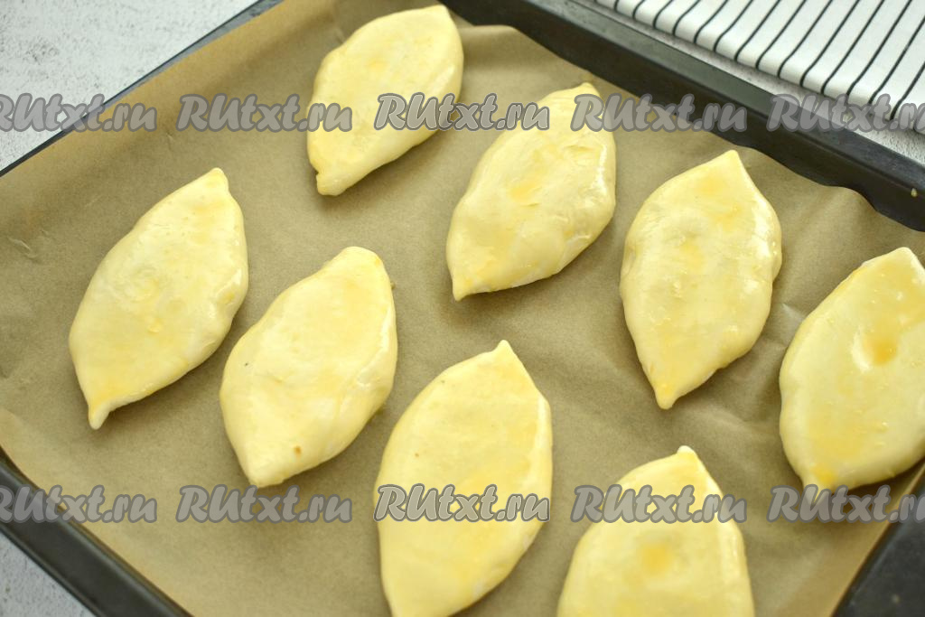 Сразу отправляем противень в духовку, разогретую до 200 градусов. Пирожки с картошкой выпекаем минут 20 (до приятного подрумянивания слоёного дрожжевого теста).